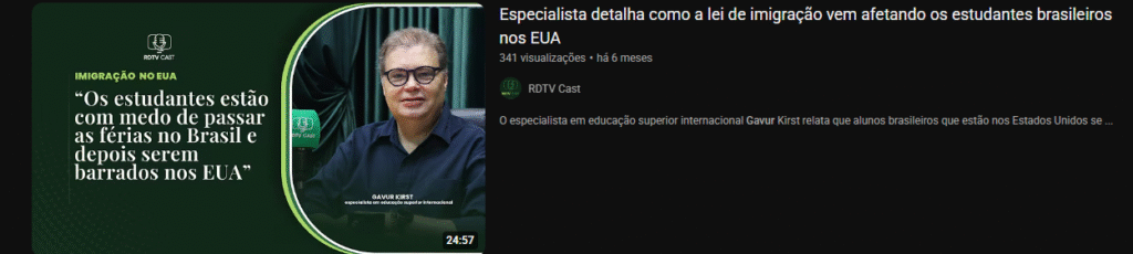 O CEO da Gold Tassel, Gavur Kirst, foi convidado do RDTV Cast para falar sobre as recentes mudanças na lei de imigração norte-americana e seus impactos na vida de estudantes brasileiros. Durante a entrevista, ele destacou como essas alterações vêm influenciando o processo de visto, adaptação e planejamento acadêmico nos Estados Unidos, reforçando a importância […]